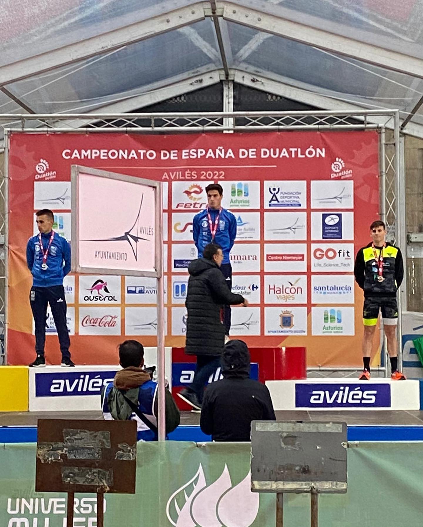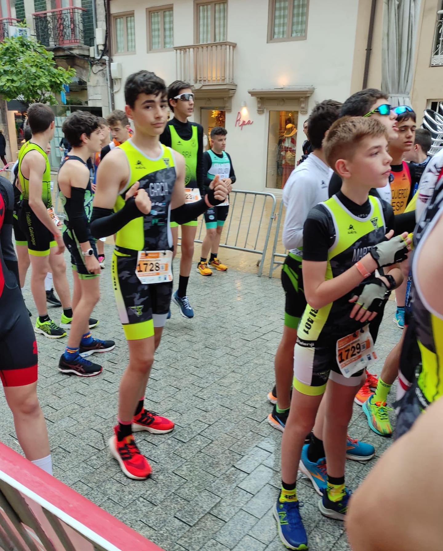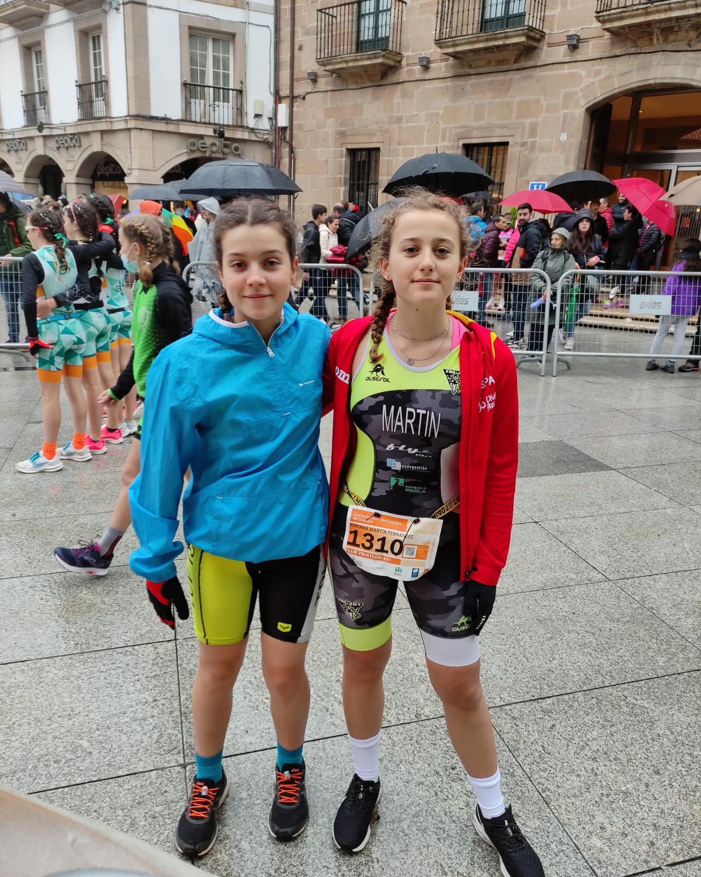 Fin de semana pasado se disputó el campeonato de España de duatlón: el sábado el día fue muy complicado debido a la lluvia. Los deportistas despiertos desde las 7:30 para desayunar ya que la salida era a las 10 y se fue posponiendo hasta las 19, pero controlaron a la perfección la incertidumbre y los nervios, y cuando se dió el ok para la salida estaban todos preparados.