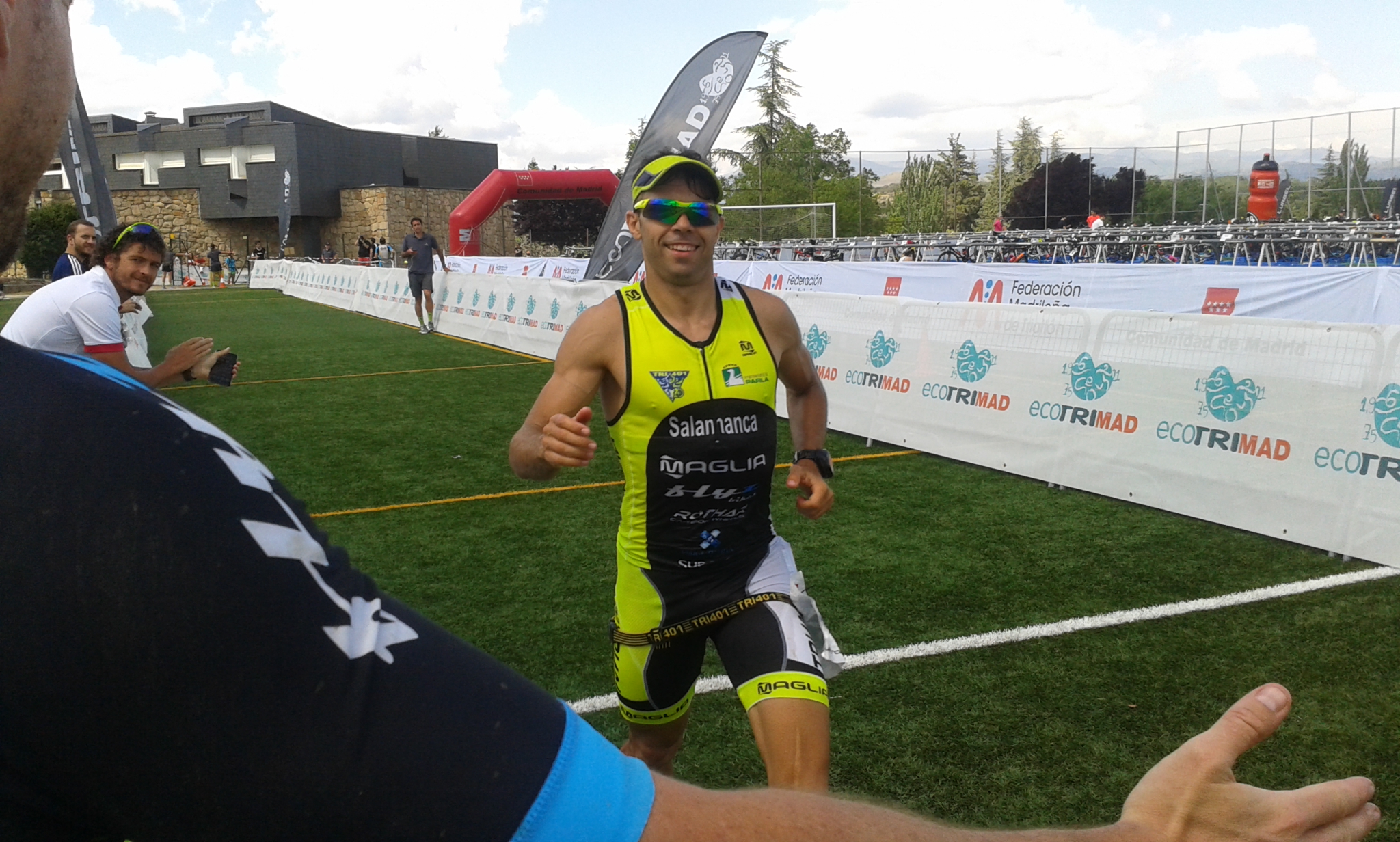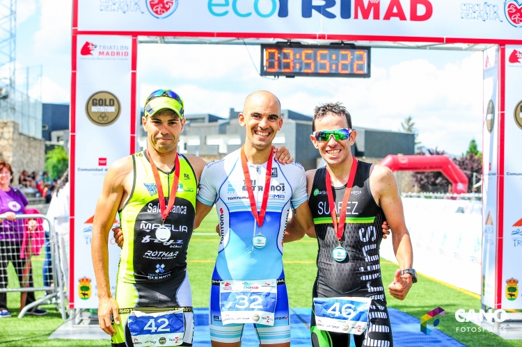 Angel Salamanca dominaba la prueba Élite saliendo del agua a más de 1’30» del segundo clasificado. Tras pasar la primera vuelta de bici liderando finalmente en la carrera a pie controlando (competía al día siguiente!!!!!!) logró ser 2° y SUBCAMPEÓN DE MADRID DE MEDIA DISTANCIA!!!!!