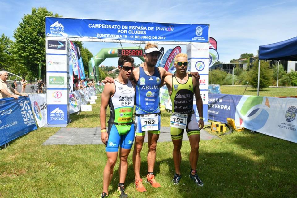En categoría masculina el cadete Iñaki Candel salía en cabeza del agua y se bajaría a correr en un trío de cabeza junto a todo un Campeón de España de Triatlon Élite como Uxio Abuin!!!!!. Tras él el jefe Ángel Salamanca. Poco después Fernando Casares y a continuacion Daniel Albitos, José Bravo y Mario Molero. Finalmente Ángel Salamanca fue 3°, Iñaki Candel 4°, Fernando Casares 10° y Daniel Albitos 20° clasificados. Que sumando puntos de José Bravo y Mario Molero en una carrera con mucho nivel lograron ser 3° CLUB DE PROMOCIÓN y subiendo al PODIUM y ascendiendoo a 2° DIVISIÓN 🏅